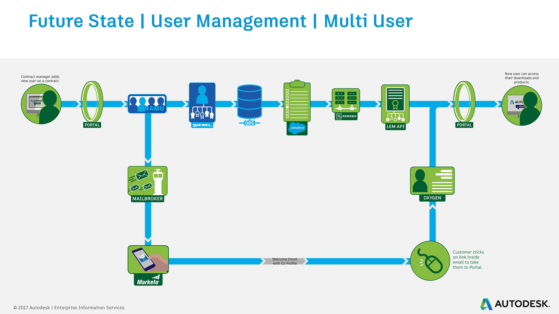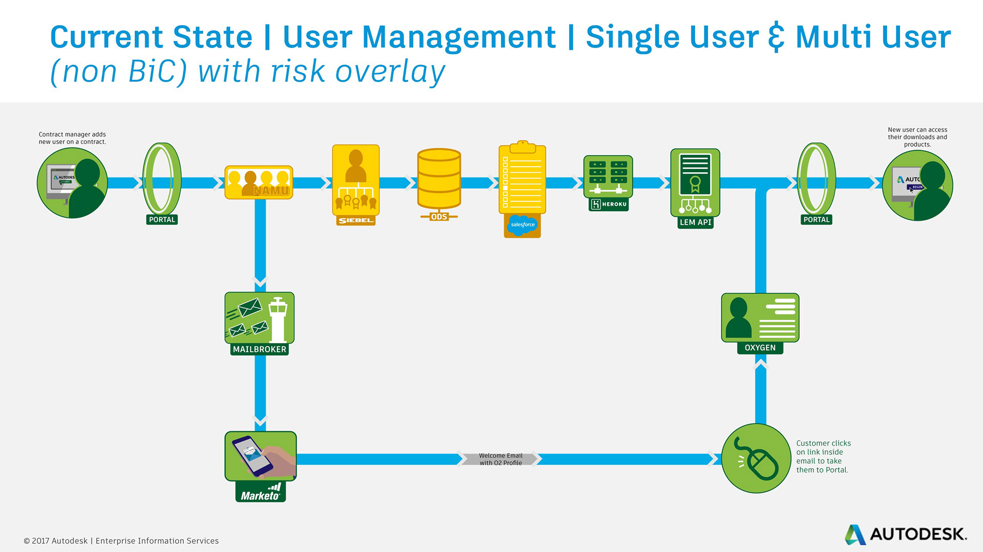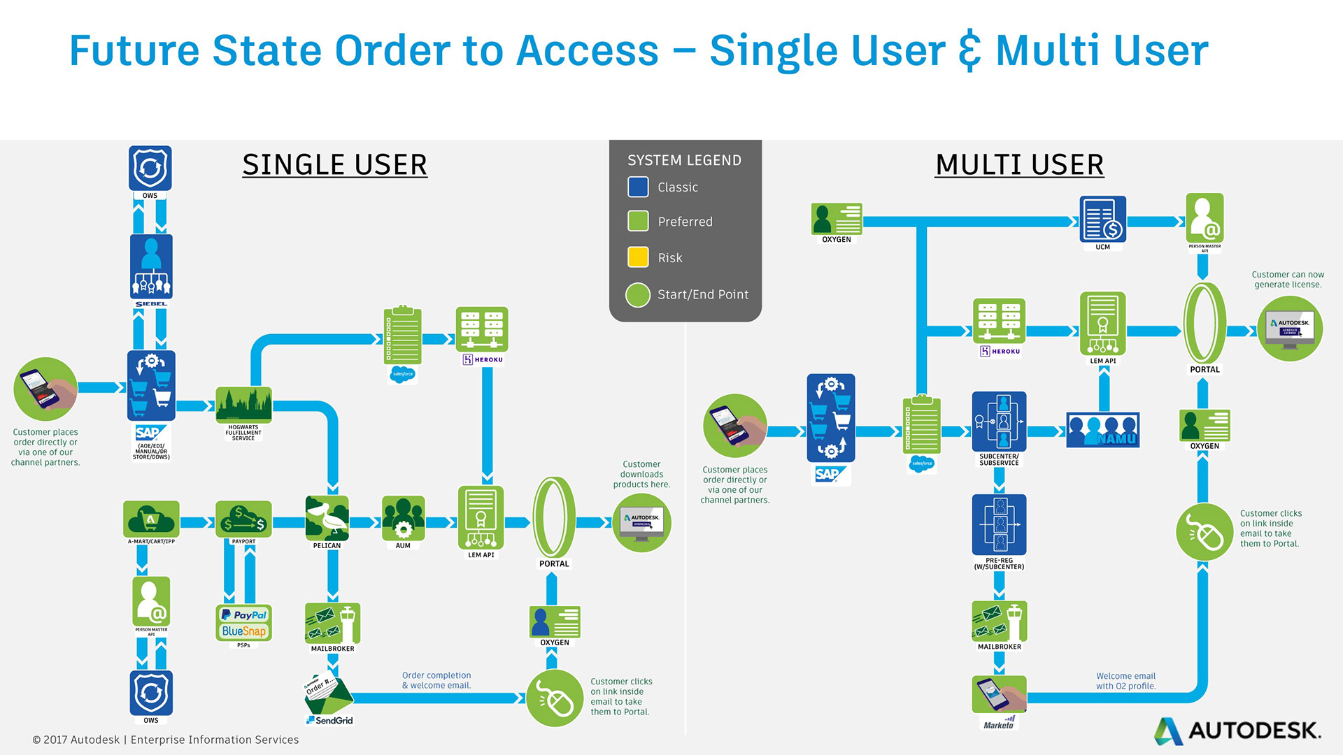 The distillation of a set of complex system diagrams (centered on the ordering process) into a more digestible visual representation to be used in a PowerPoint Presentation and shared internally among stakeholders.