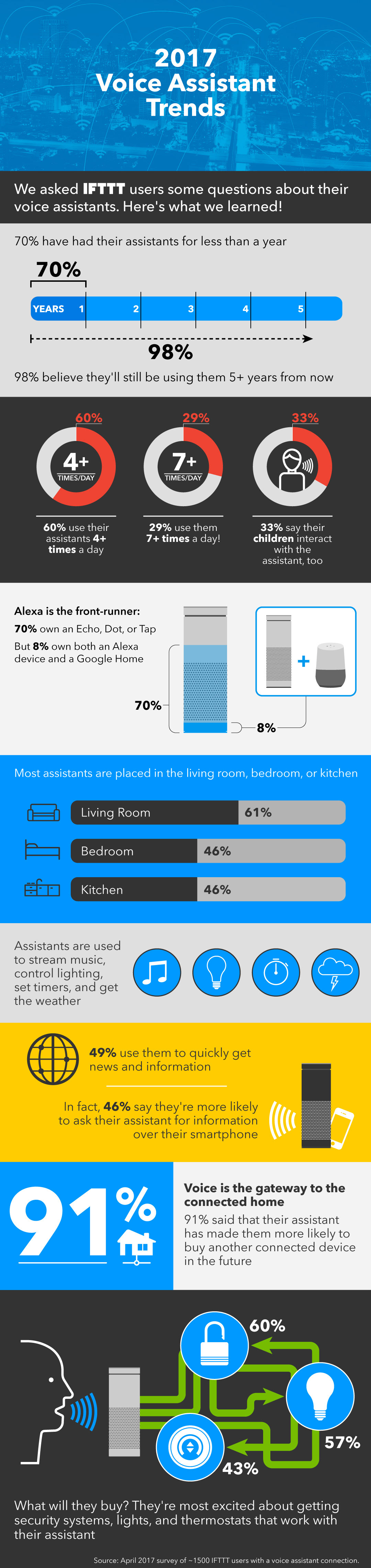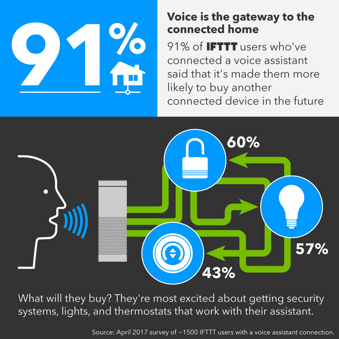 Infographic created for IFTTT to illustrate the trends in voice technology as they relate to IOT devices.